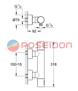 GROHE GROHTHERM 3000 COSMOPOLITAN BATERIA NATRYSKOWA TERMOSTATYCZNA DN15 CHROM