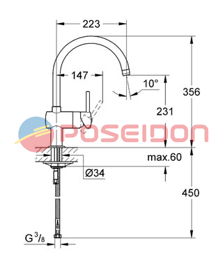 GROHE MINTA BATERIA KUCHENNA WYL "U" DN15 CHROM